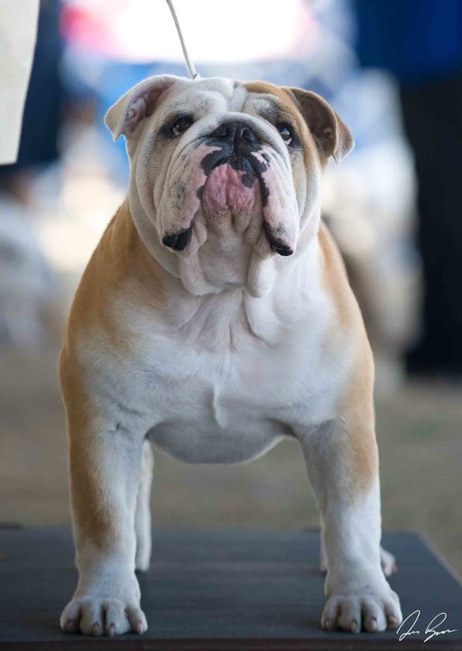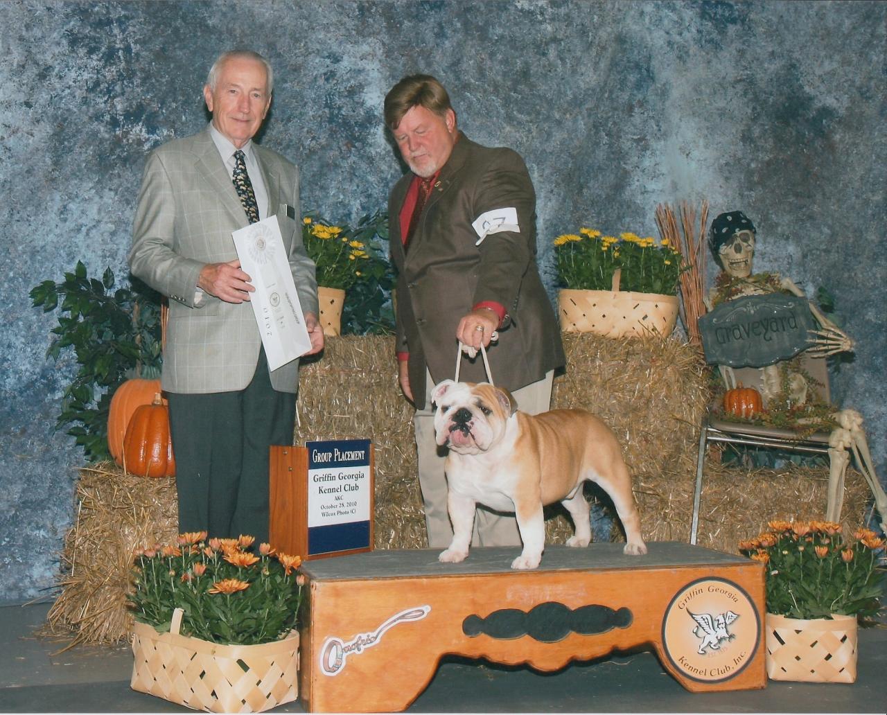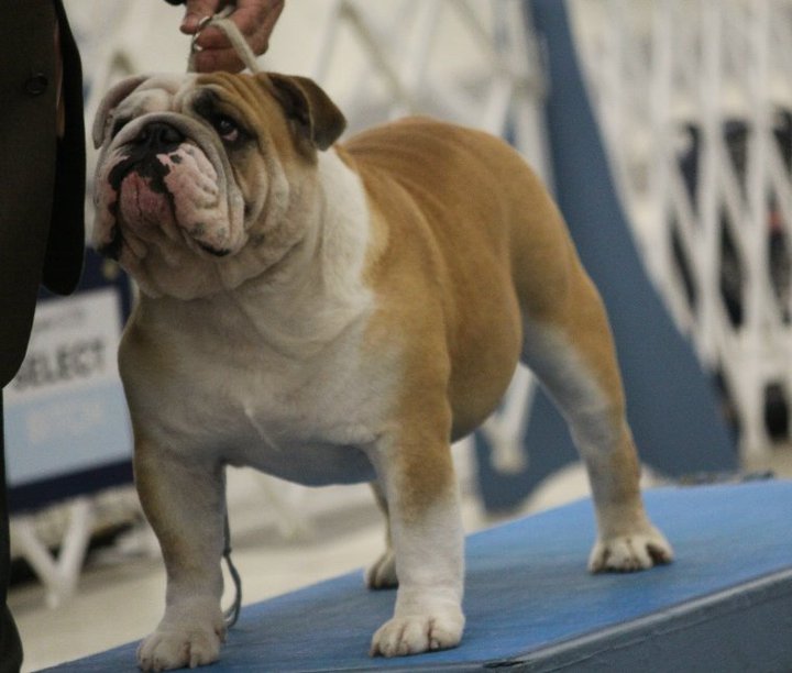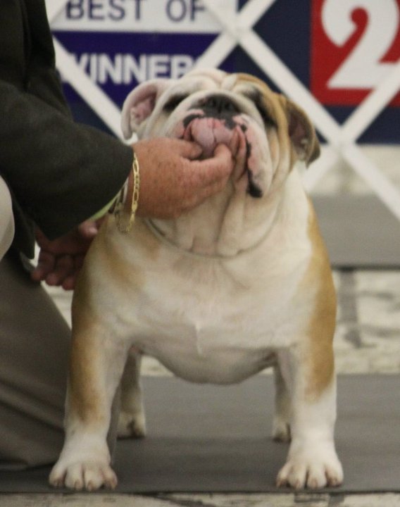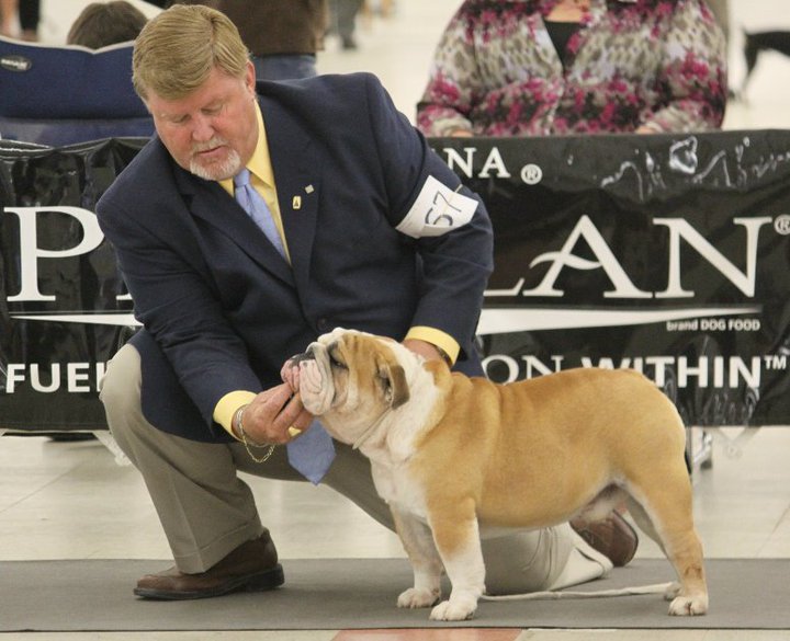 Bruiser started his show career in Florida at the age of 8 months old in December 2008. He won reserve his first 2 shows and won points at every show after that. He finished his Championship in July 2009. He is now invited to the 2009 and 2010 AKC/Eukanuba Championship in Long Beach California. He was shown very limited and had great success. Bruiser won his first Best of Breed from the Bred By Exhibitor class in Perry Ga under Mrs. Keke Kahn and went on to win a Group 3 that day. He has made us very proud with numerous Best of Breeds and is producing beautiful puppies.